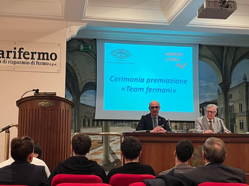 Si è tenuta questa mattina a Palazzo Matteucci, sede della Fondazione Cassa di Risparmio di Fermo, la cerimonia di premiazione dei team fermani vincitori del concorso “Conoscere la Borsa”.
